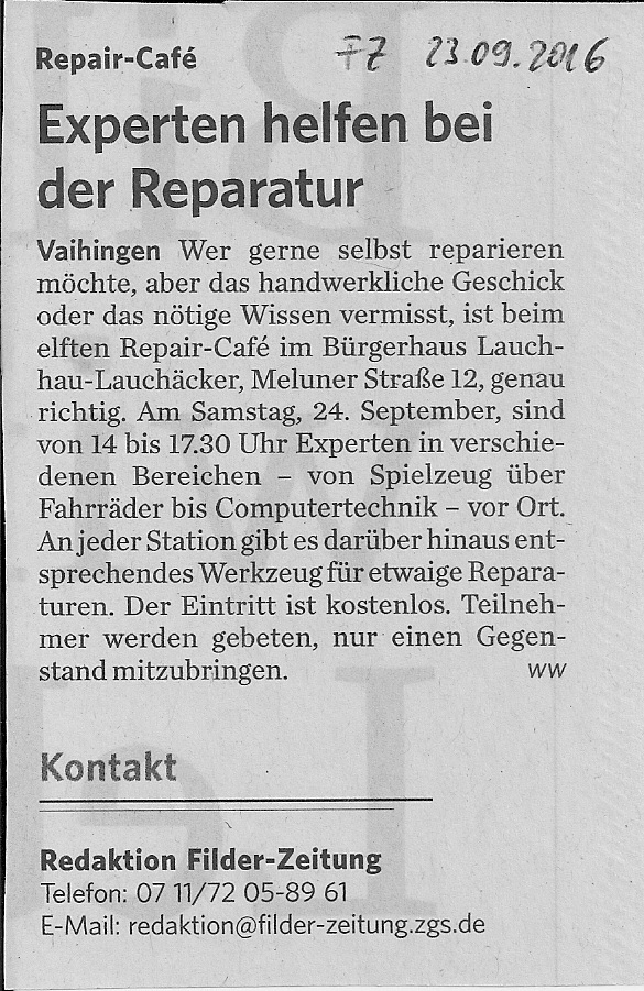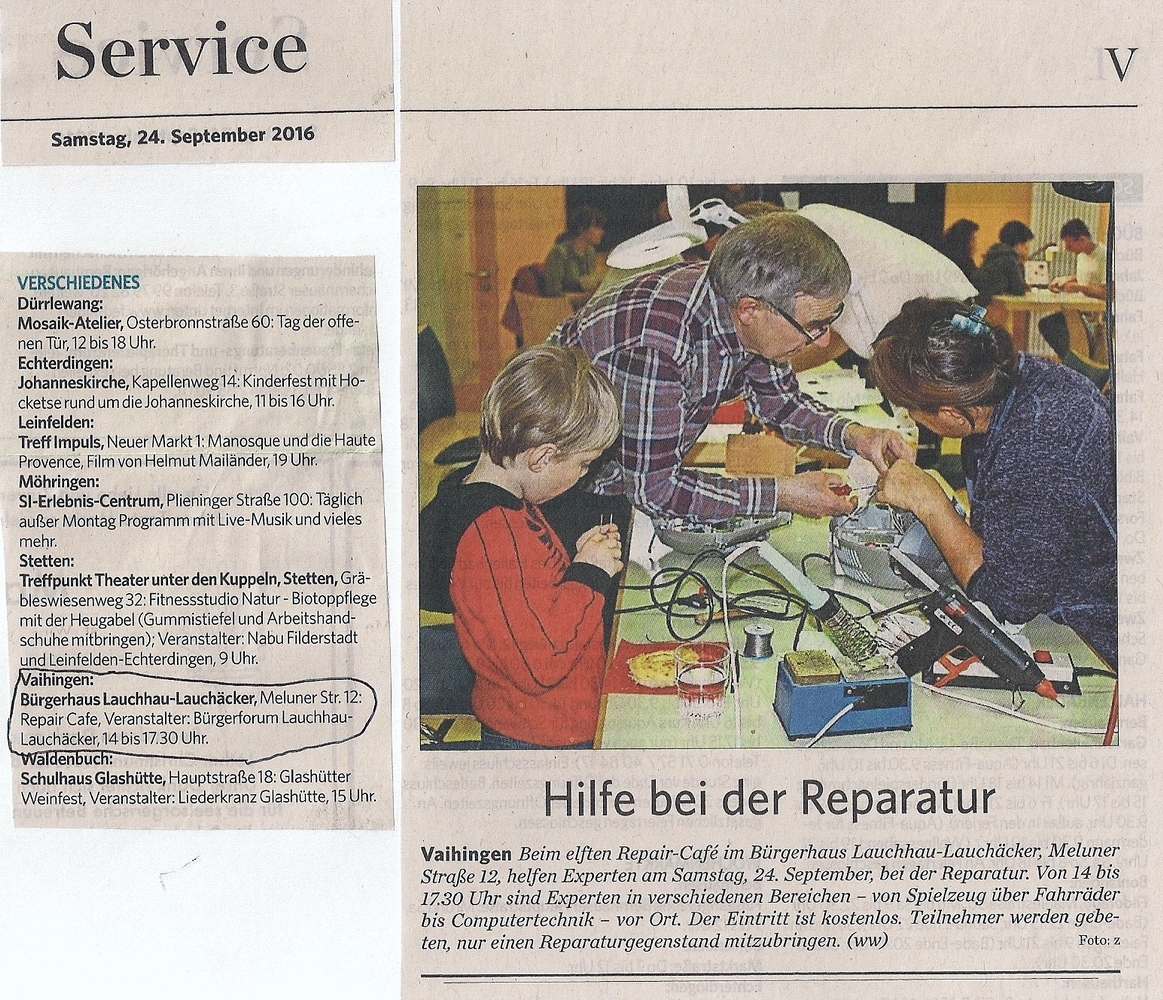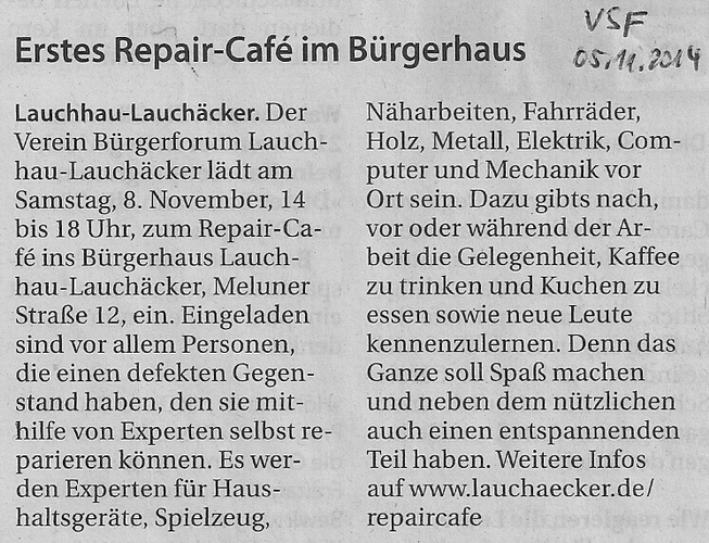Ankündigung 11. Repair Cafe im Bürgerhaus