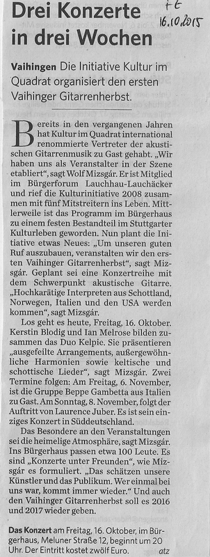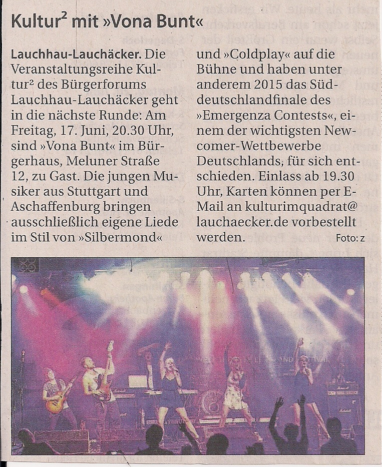 das Konzert mit VONA BUNT am 17. Juni 2016 im Bürgerhaus Lauchhau-Lauchäcker |