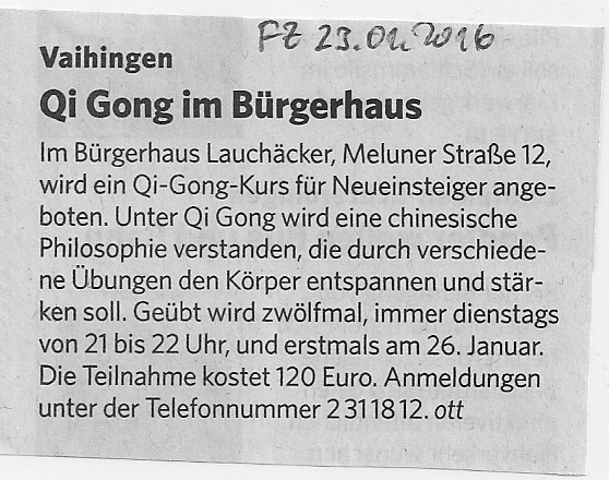 Hinweis auf den Qi-Gong-Kurs für Neueinsteiger am