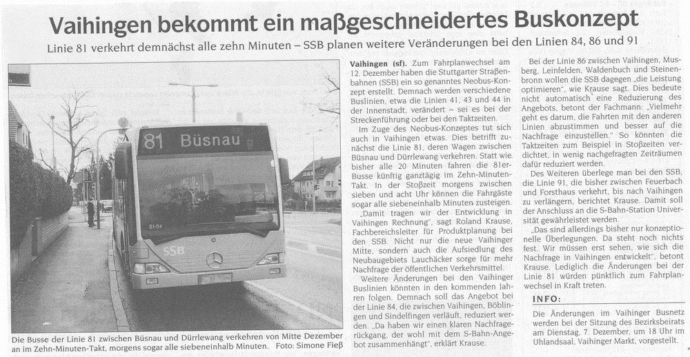 SSB planen weitere Veränderungen bei den Linien 84, 86