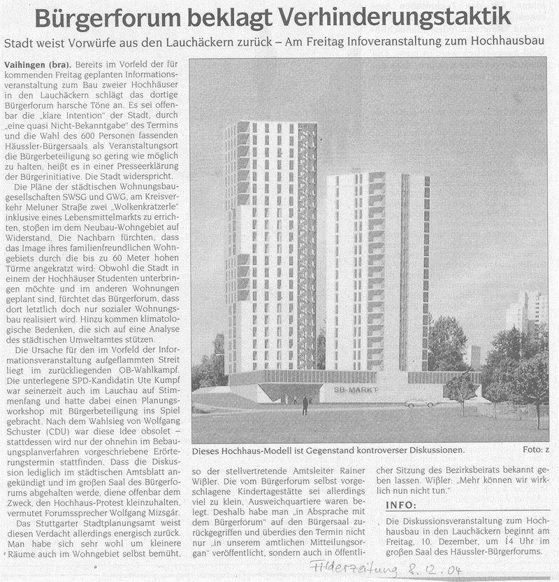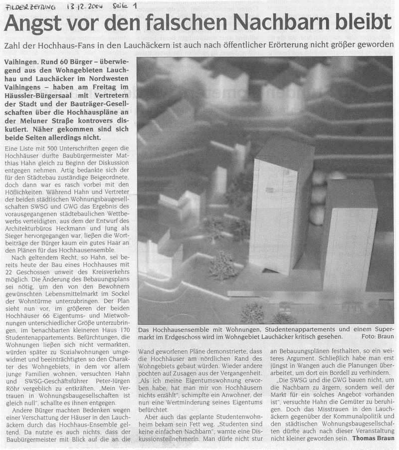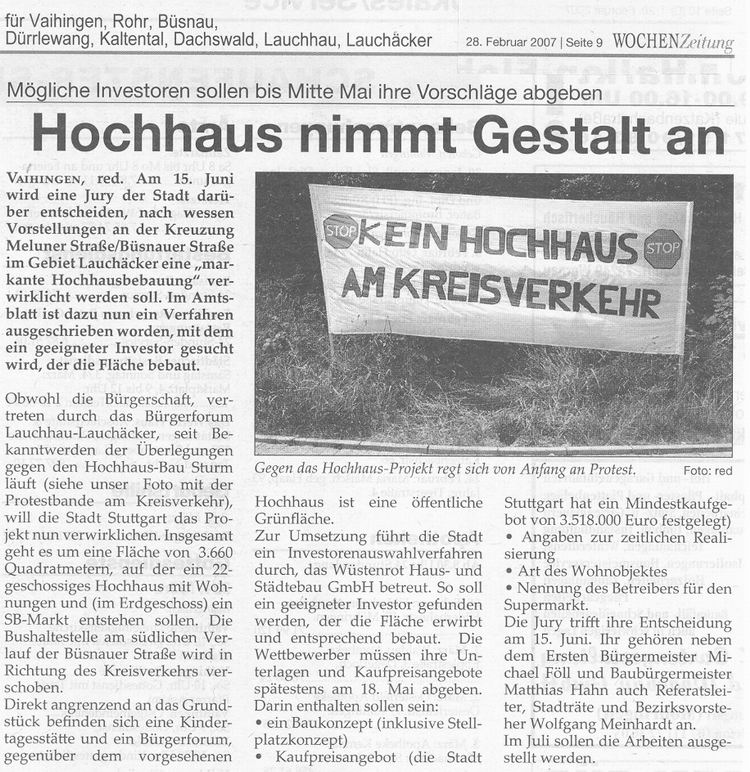 Zahl der Hochhaus-Fans in den Lauchäckern ist auch