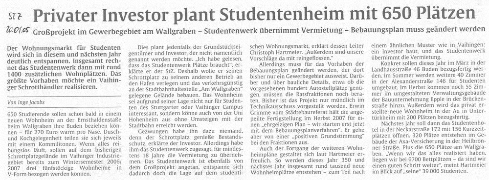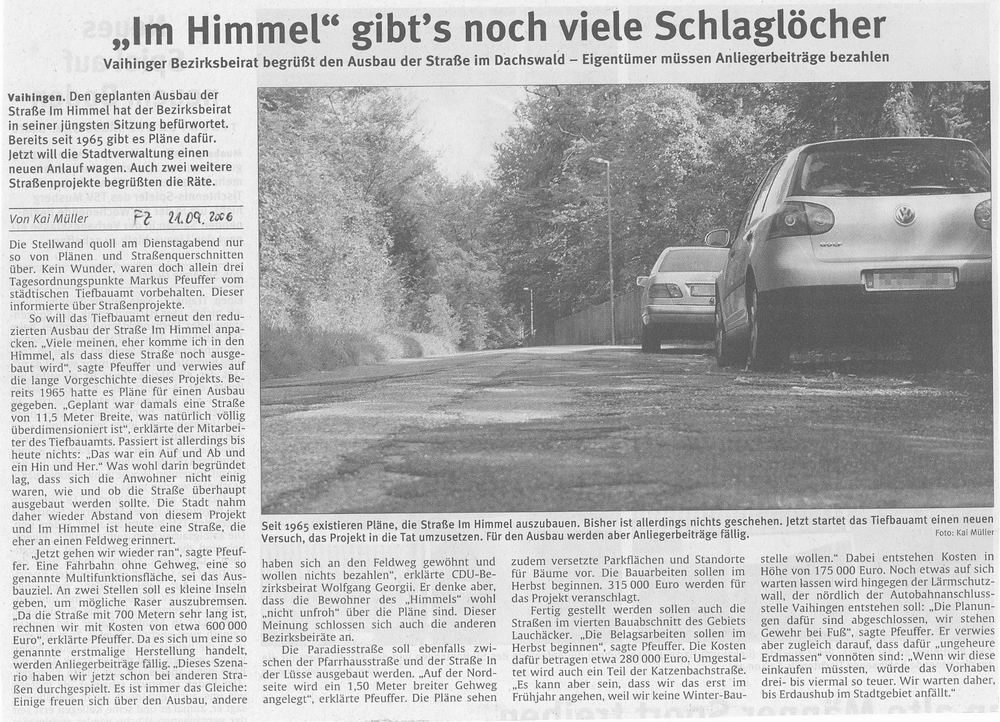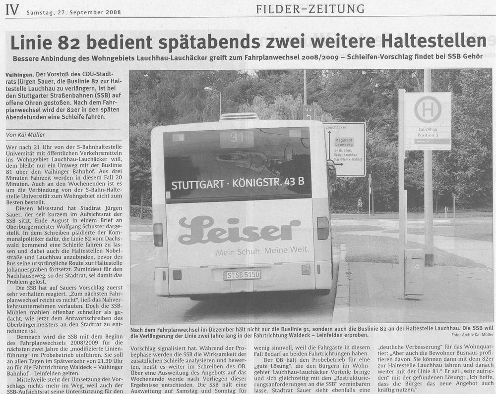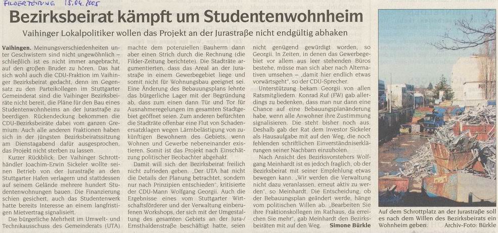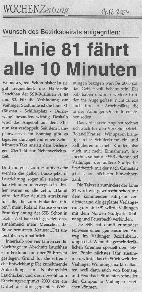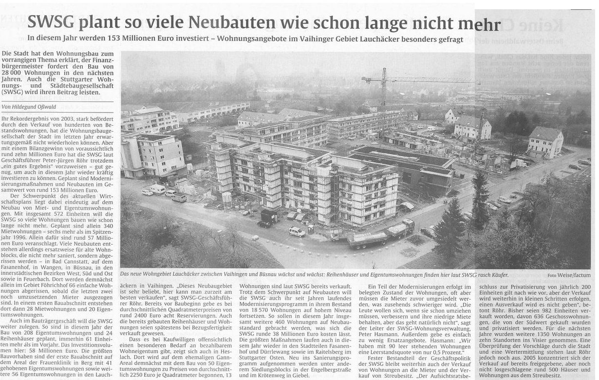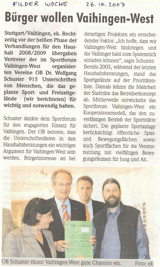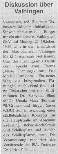 Stadtbezirk Vaihingen für ein Pilotprojekt