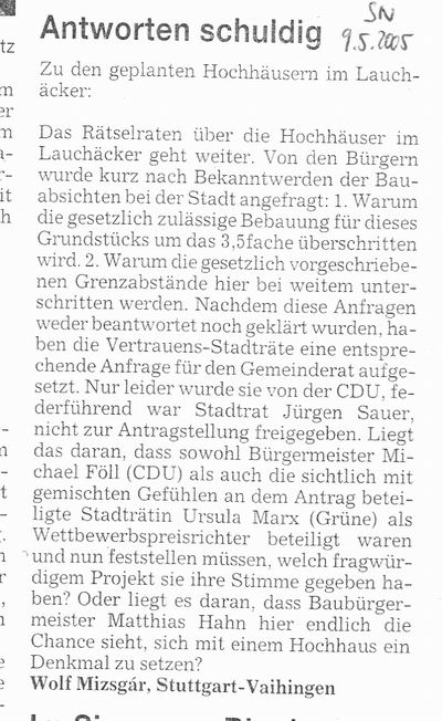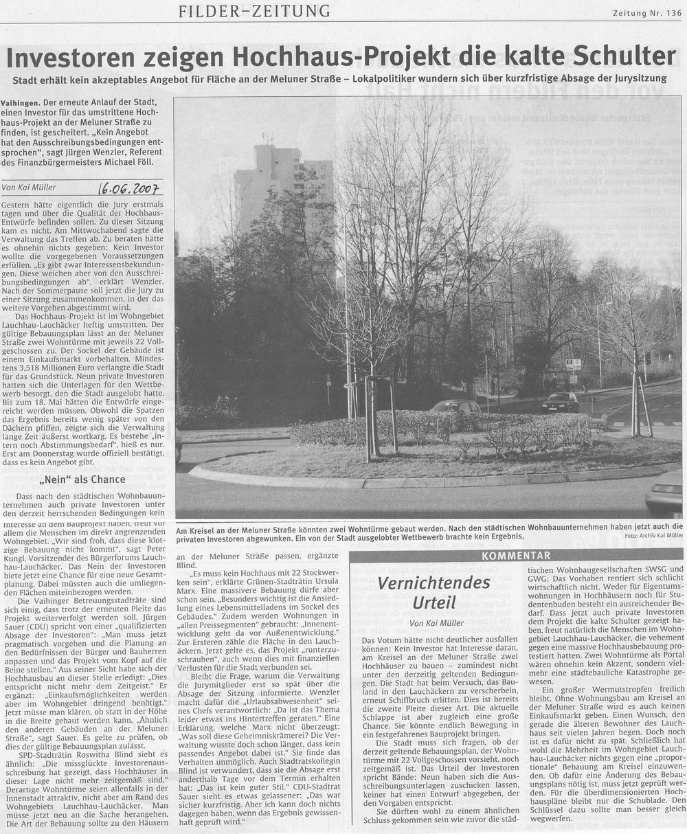 beklagt Verhinder- ungstaktik Stadt weist Vorwürfe aus den
