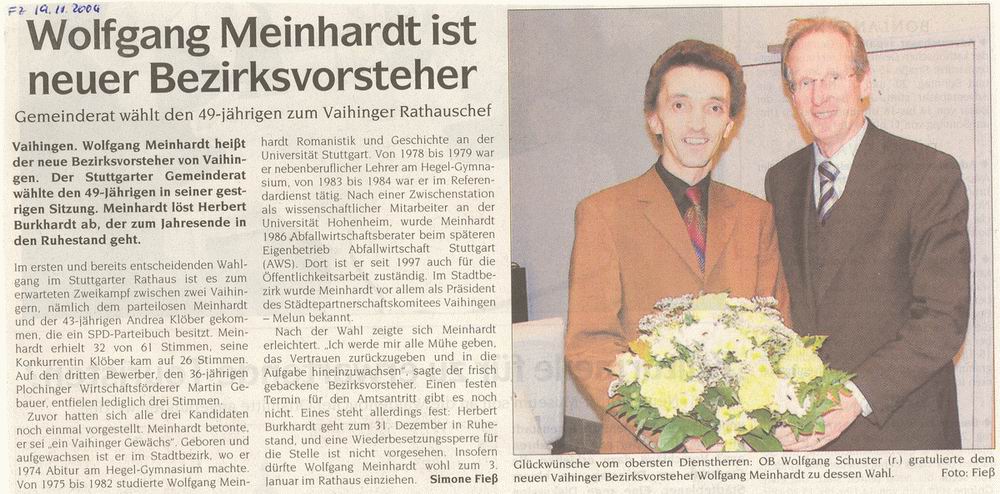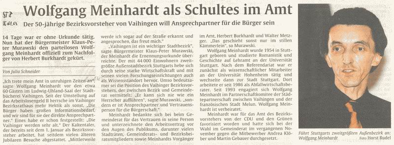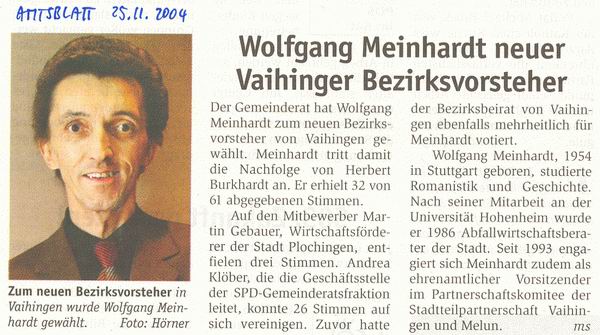 Meinhardt ist neuer Vaihinger Bezirksvorsteher