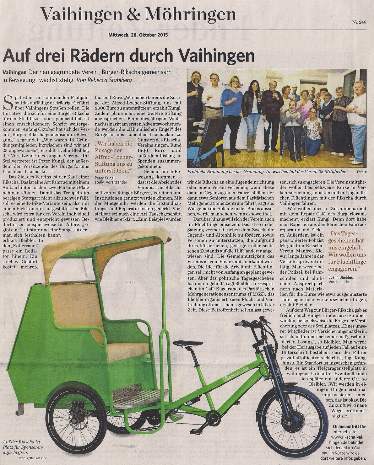 Der neu gegründete Verein "Bürger-Rikscha gemeinsam in