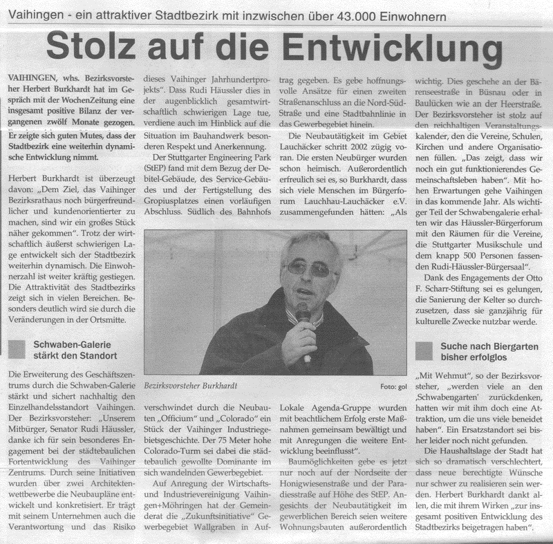 Vaihinger Schaufenster 24.12.2002 Stolz auf die Entwicklung