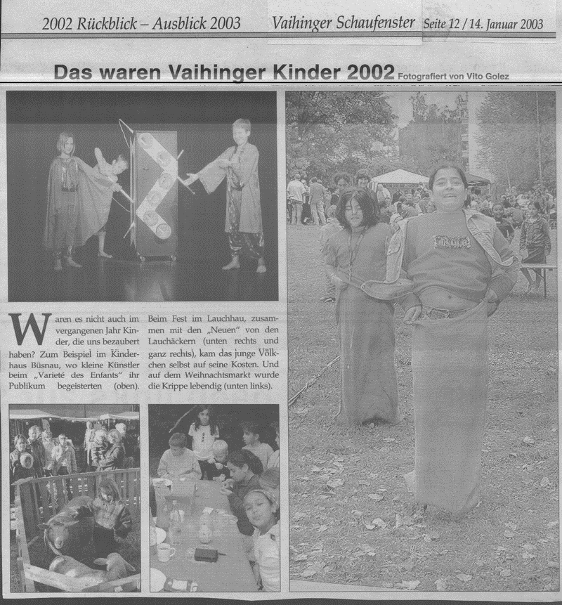 Vaihinger Schaufenster 14.01.2003 Das waren Vaihingen Kinder 2002
