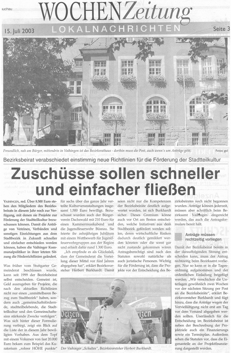 WOCHENZeitung 15.07.2003 Zuschüsse sollen schneller und einfacher fließen