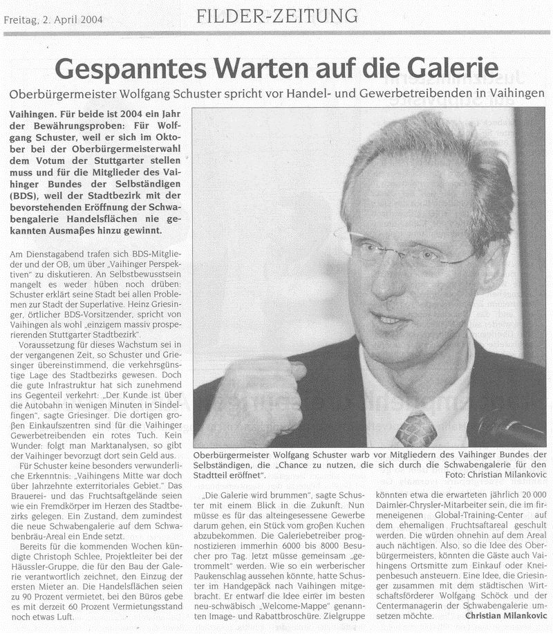 FILDERZEITUNG 02.04.2004 Gespanntes Warten auf die Galerie