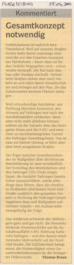 FILDERZEITUNG 05.04.2004 Autofahrer auf der Suche nach Vaihingen