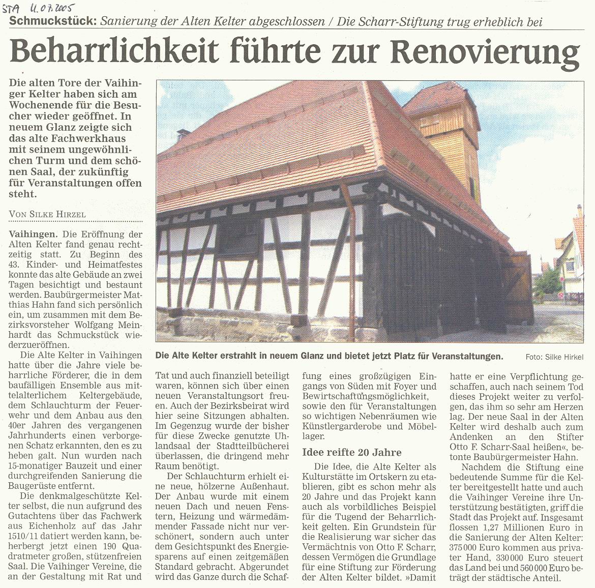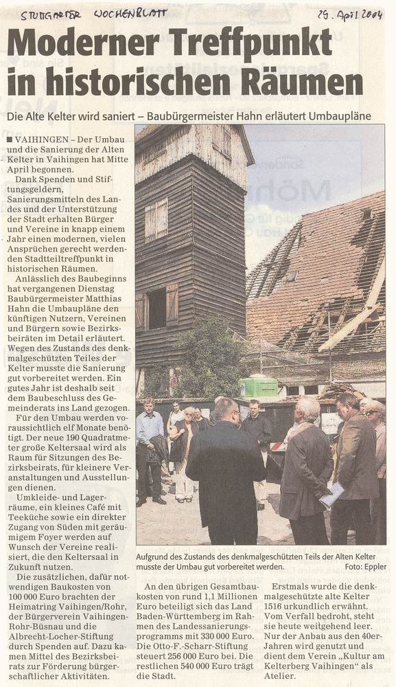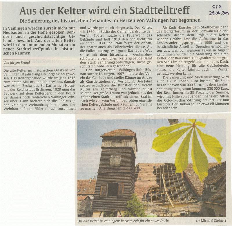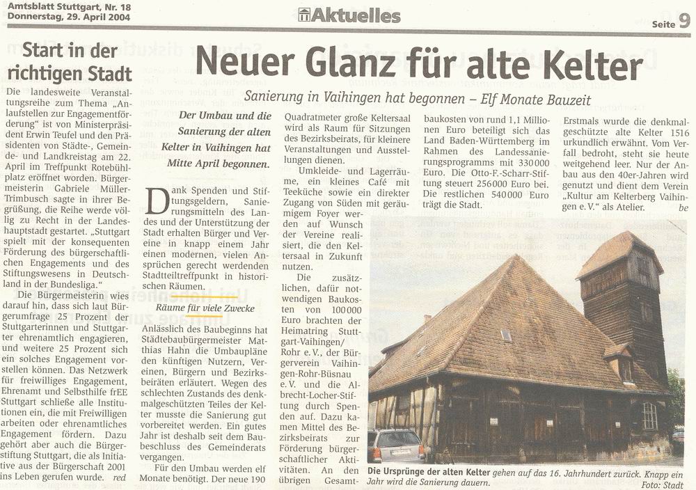 Stuttgarter Zeitung 28.04.2004 Aus der Kelter wird ein Stadtteiltreff