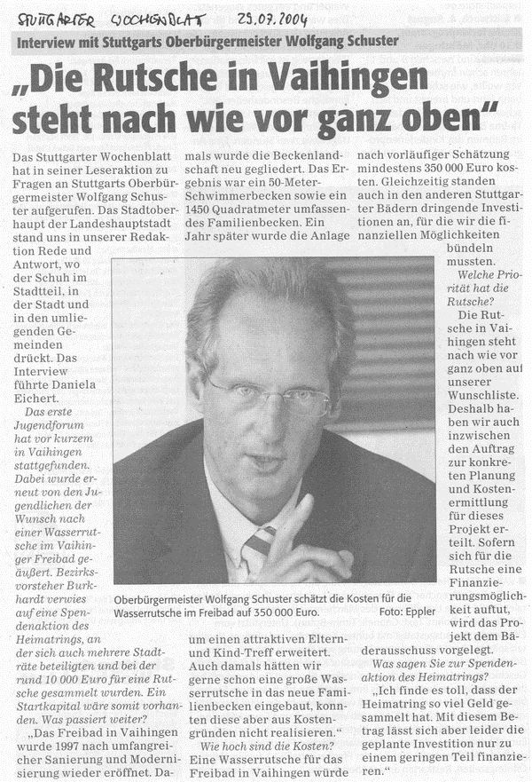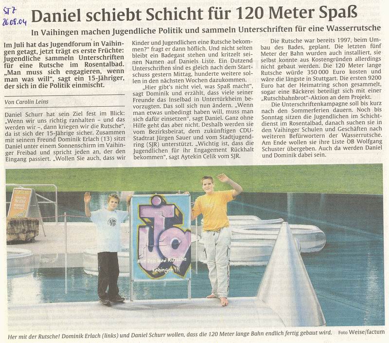 29.07.2004 "Die Rutsche in Vaihingen steht nach wie vor ganz oben"