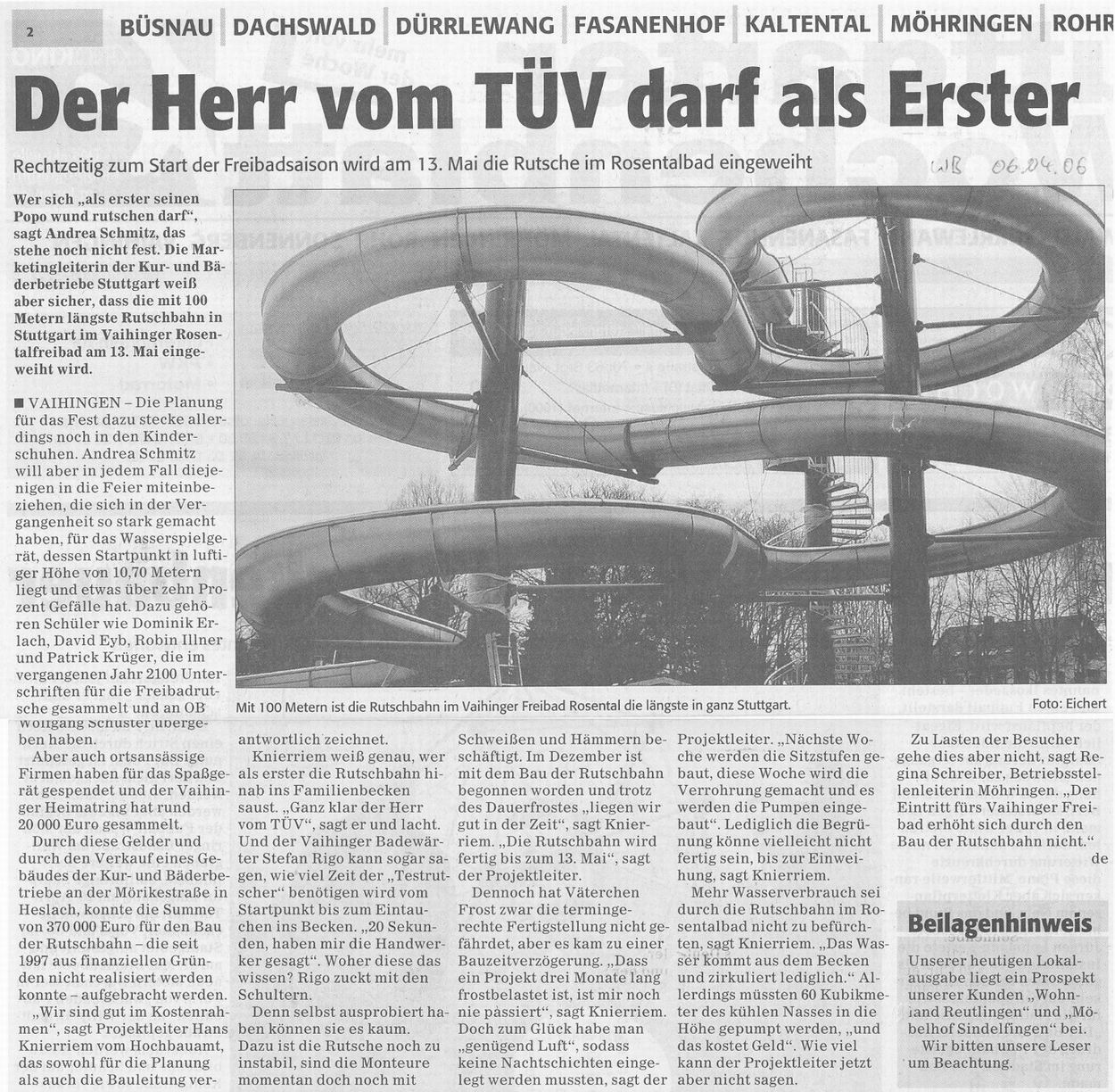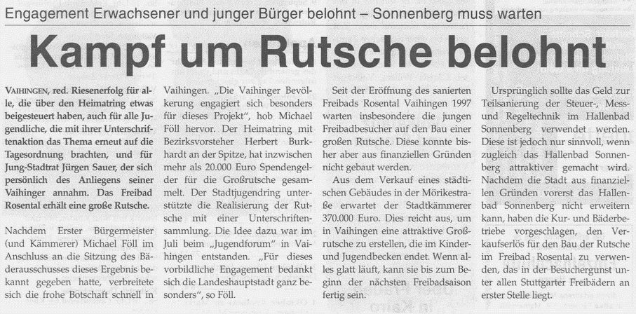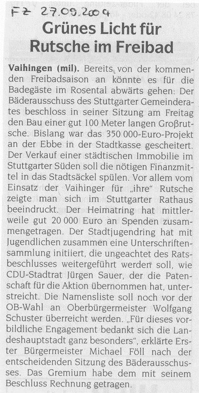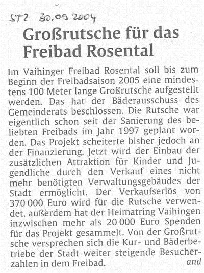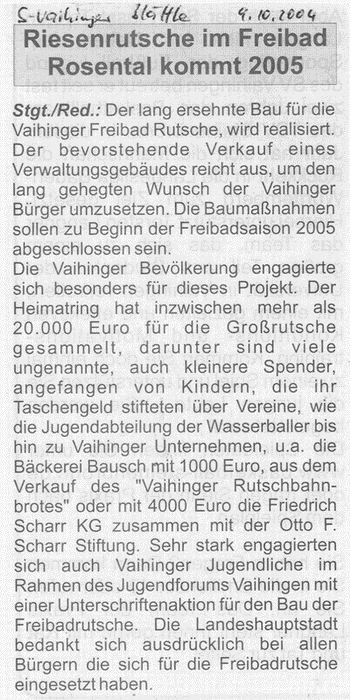 S-Vaihinger Blättle Okt. 2004 Riesenrutsche im Freibad Rosental kommt 2005