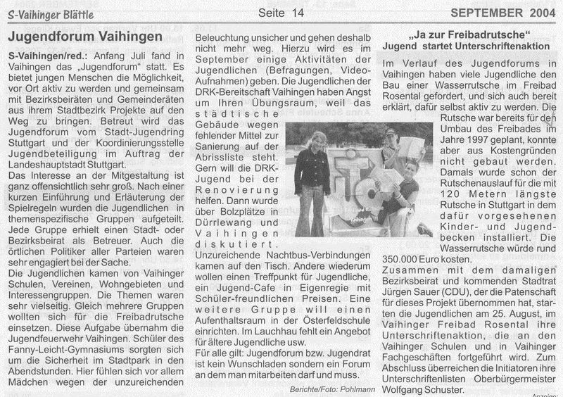 S-Vaihinger Blättle Sept. 2004 Jugendforum Vaihingen