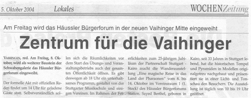 WOCHENZeitung 05.10.2004 Zentrum für die Vaihinger
