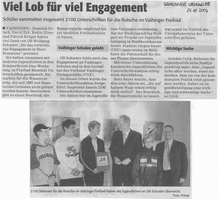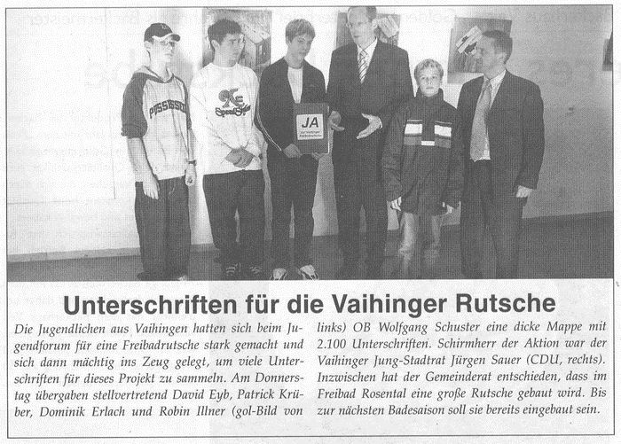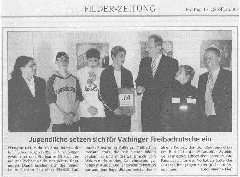 FILDERZEITUNG 15.10.2004 Jugendliche setzen sich für Vaihinger Freibadrutsche ein