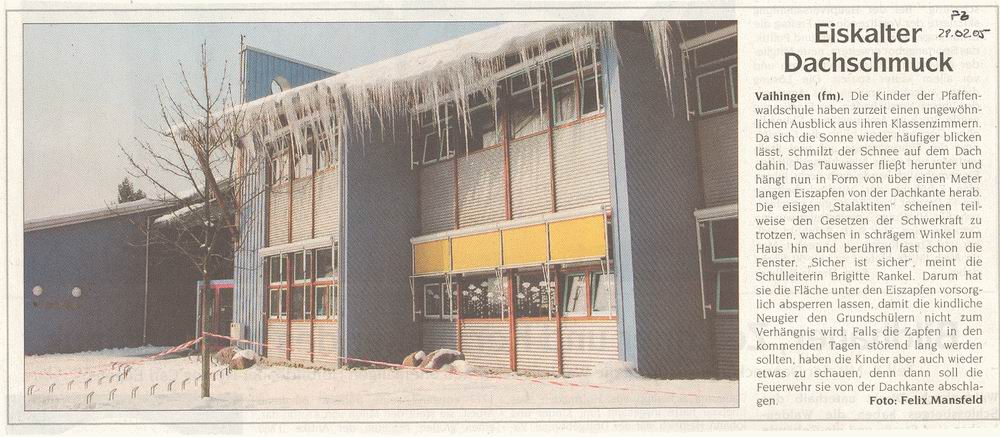 FILDERZEITUNG 28.02.2005 Eiskalter Dachschmuck
