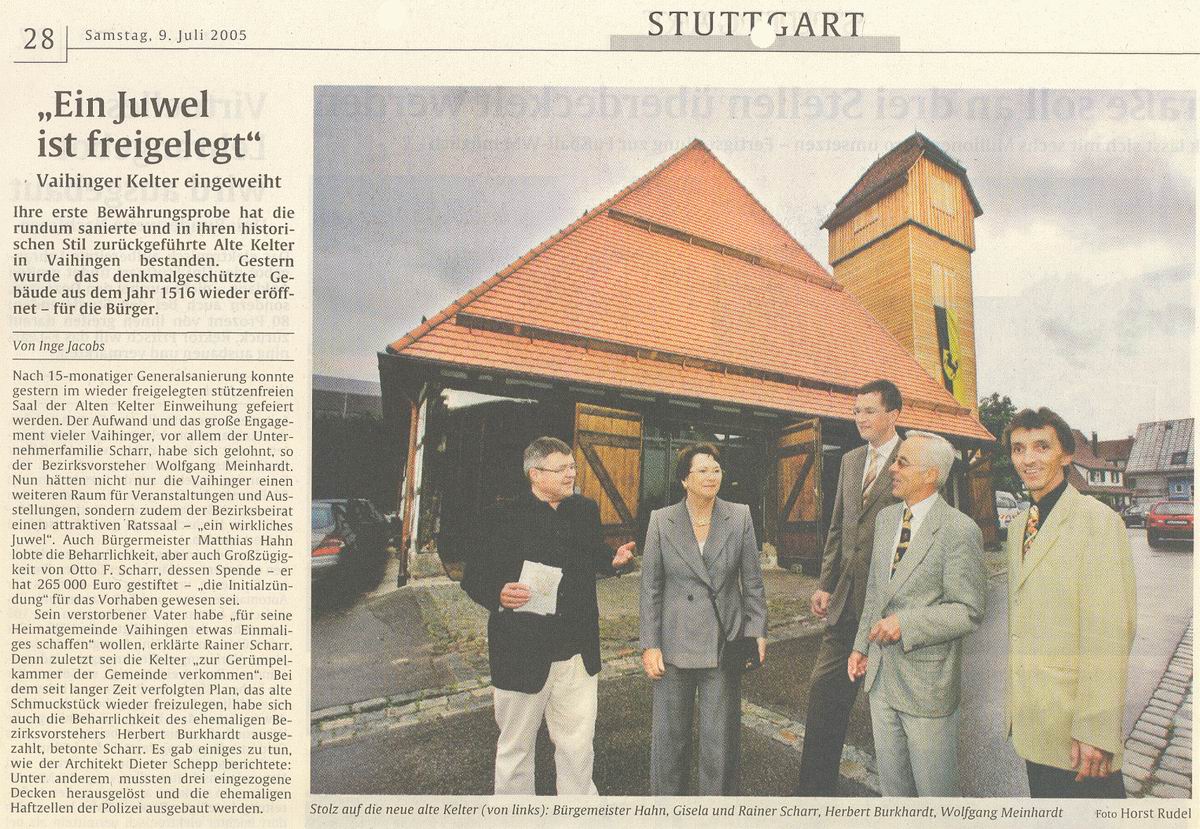 Schmuckstück: Sanierung der Alten Kelter abgeschlossen - Die Scharr-Stiftung trug erheblich bei
