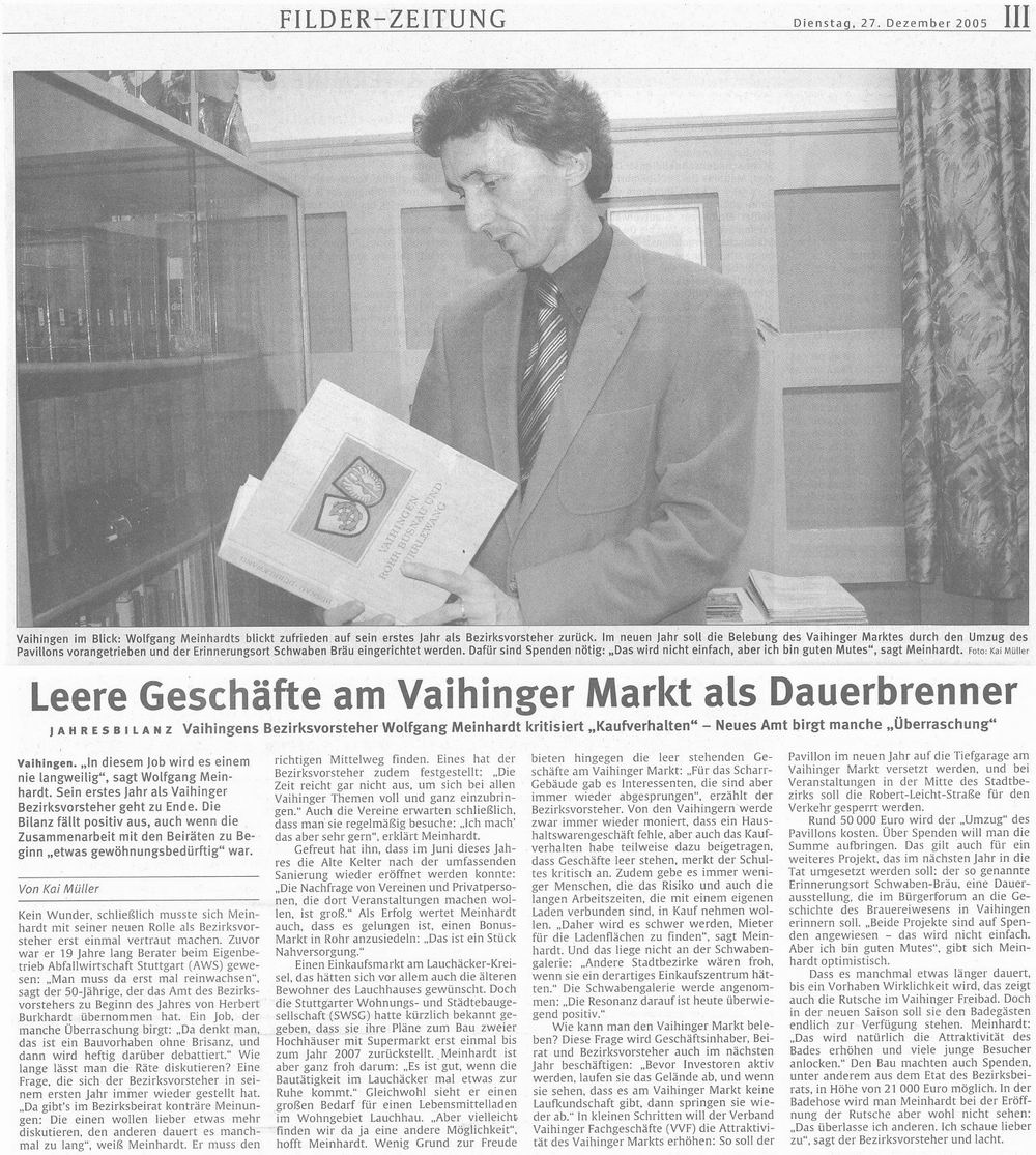 Amtsblatt 25.11.2004 Wolfgang Meinhardt ist neuer Vaihinger Bezirksvorsteher